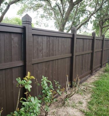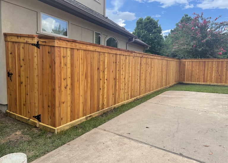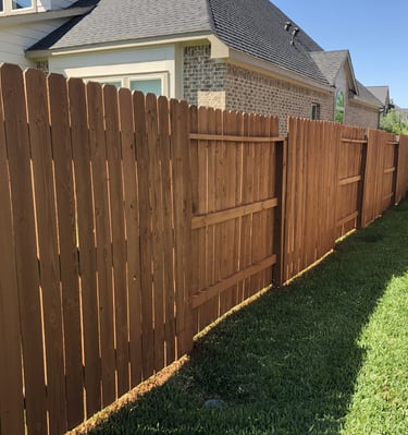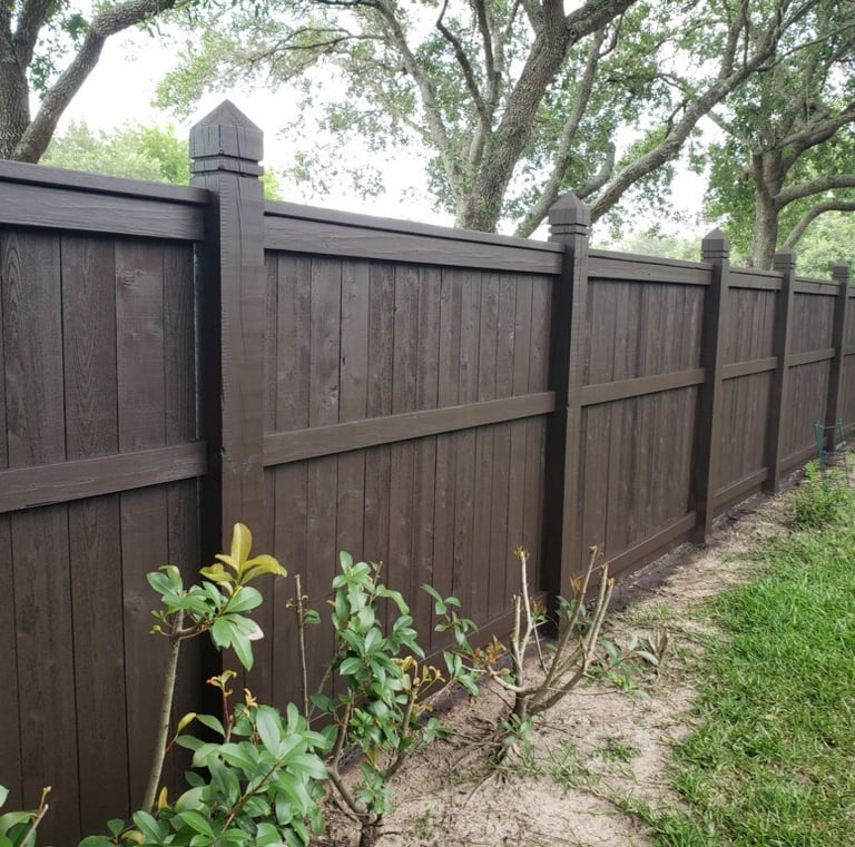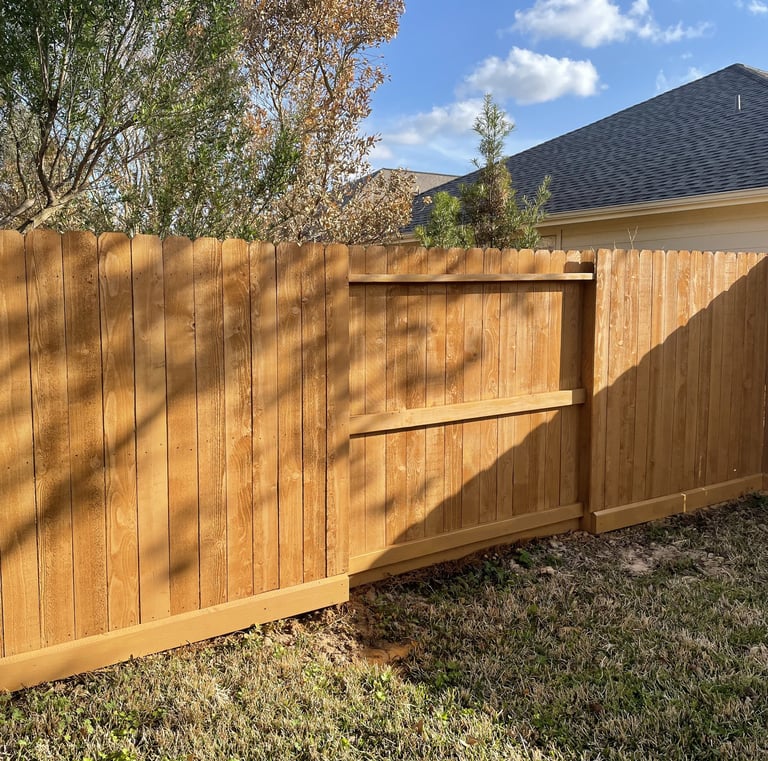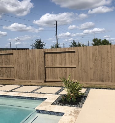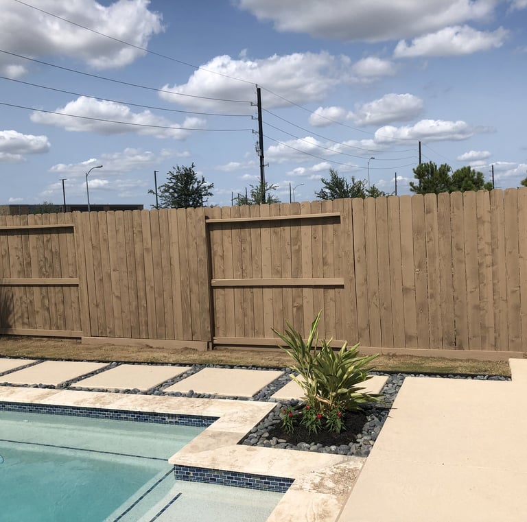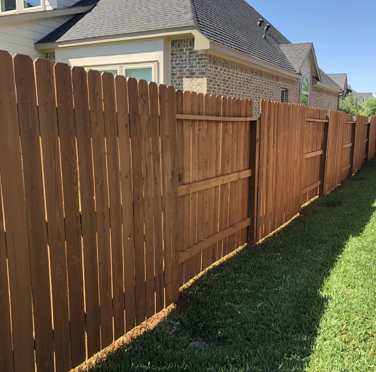 Take a look at some of our standout fence staining projects from around the Houston area. We use Sherwin-Williams SuperDeck stain for rich color and long-lasting protection—formulated to resist algae, weathering, and the harsh Texas heat and humidity.